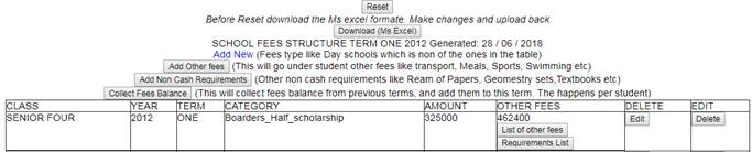 2. You can Reset / add other fees / Non cash payments / Collect fees balances from previous terms
