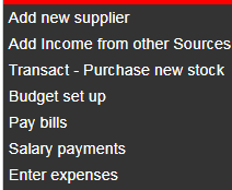 Menu bar -> FINANCE -> Drop down menu -> Left Click