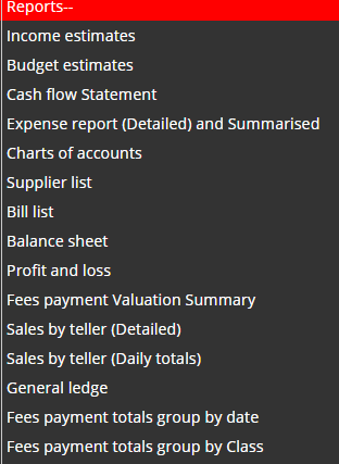 4. Cash flow statement, Profit and Loss, Fees payment Evaluation Summery, Sales by teller (Detailed and Daily)